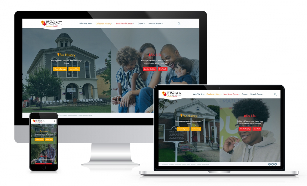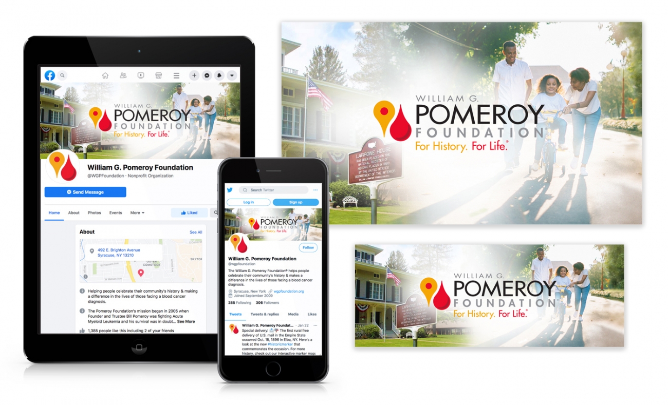 The William G. Pomeroy Foundation hired Cowley Associates in 2021 to modernize its branding and communications program, and while doing so, leverage the opportunity to more clearly identify and articulate the two, wholly unrelated focal points of its mission: The celebration of local history through funding of historic signs nationwide and the funding of research, treatment, and donor initiatives related to blood cancer.